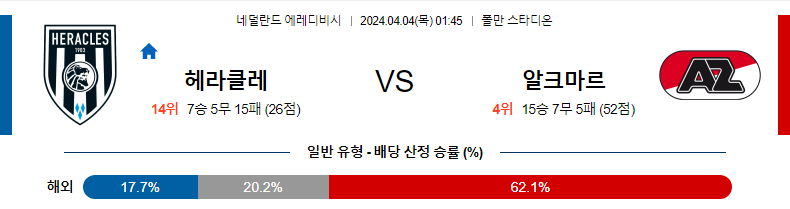 [킹콩티비] 헤라클레스 알크마르 분석 4월4일 에레디비시 스포츠중계