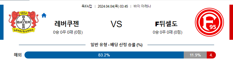 [킹콩티비] 레버쿠젠 뒤셀도르프 분석 4월4일 독일FA컵 스포츠중계