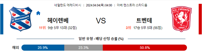 [킹콩티비] 헤에렌베 트벤테 분석 4월4일 에레디비시 스포츠중계