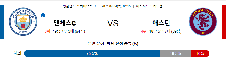 [킹콩티비] 맨시티 애스턴빌라 분석 4월4일 EPL 스포츠중계