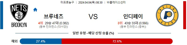 [킹콩티비] 브루클린 인디애나 분석 4월4일 NBA 스포츠중계