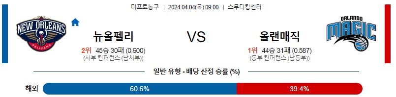 [킹콩티비] 뉴올리언스 올랜도 분석 4월4일 NBA 스포츠중계