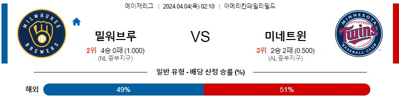 밀워키 미네소타 야구분석