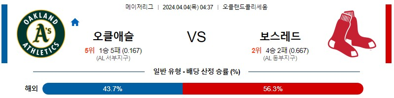 [킹콩티비] 오클랜드 보스턴 분석 4월4일 MLB 스포츠중계
