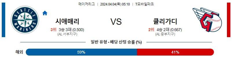 [킹콩티비] 시애틀 클리블랜드 분석 4월4일 MLB 스포츠중계