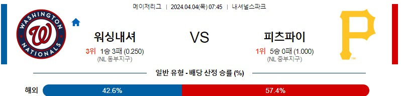 [킹콩티비] 워싱턴 피츠버그 분석 4월4일 MLB 스포츠중계