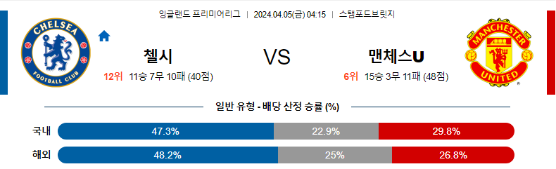 [킹콩티비] 첼시 맨유 분석 4월5일 EPL 스포츠중계