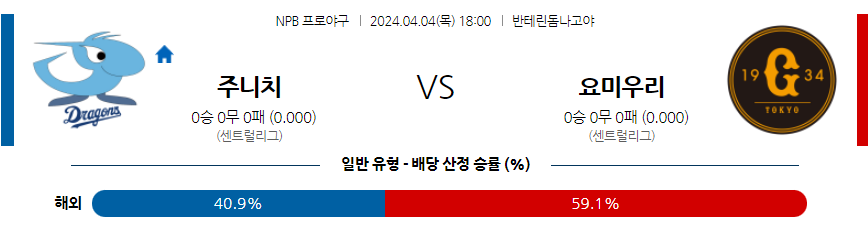 [킹콩티비] 주니치 요미우리 분석 4월4일 NPB 스포츠중계