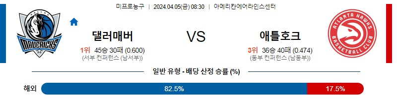 [킹콩티비] 댈러스 애틀란타 분석 4월5일 NBA 스포츠중계