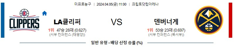 [킹콩티비] 클리퍼스 덴버 분석 4월5일 NBA 스포츠중계