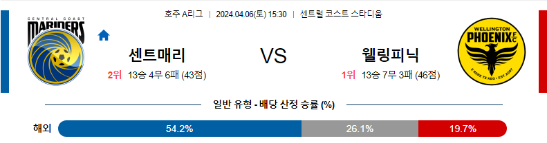 [킹콩티비] 센트럴코스트 웰링턴 분석 4월6일 A리그 스포츠중계