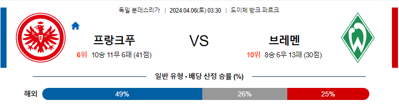 [킹콩티비] 프랑크푸르트 브레멘 분석 4월6일 분데스리가 스포츠중계