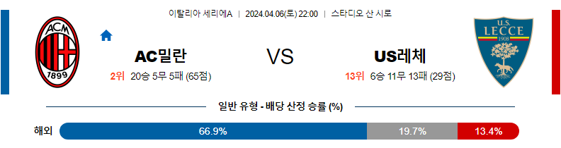 [킹콩티비] AC밀란 레체 분석 4월6일 세리에A 스포츠중계