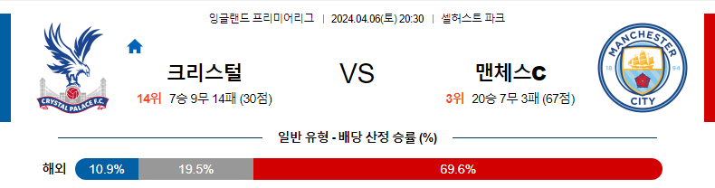 [킹콩티비] 크리스탈팰리스 맨시티 분석 4월6일 EPL 스포츠중계