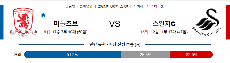 [킹콩티비] 미들즈브러 스완지 분석 4월6일 챔피언쉽 스포츠중계