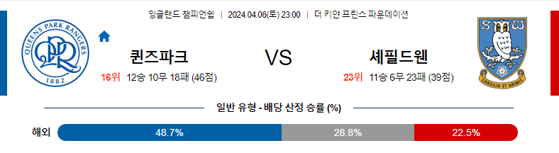 퀸즈파크 셰필드웬즈 축구분석