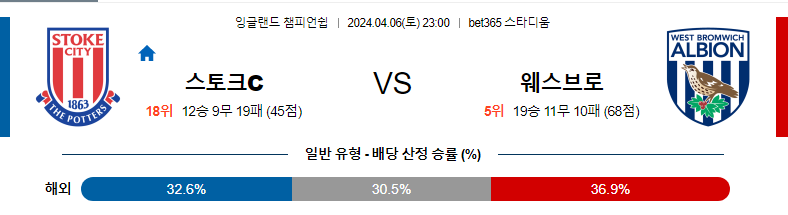[킹콩티비] 스토크 웨스트브롬 분석 4월6일 챔피언쉽 스포츠중계