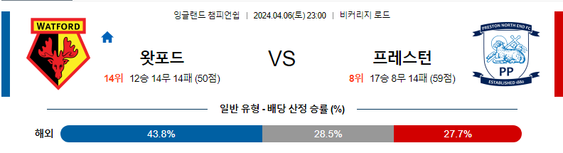 왓포드 프레스턴 축구분석