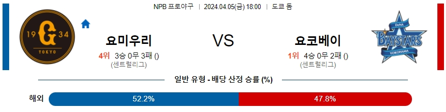 [킹콩티비] 요미우리 요코하마 분석 4월5일 NPB 스포츠중계