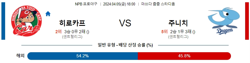 [킹콩티비] 히로시마 주니치 분석 4월5일 NPB 스포츠중계