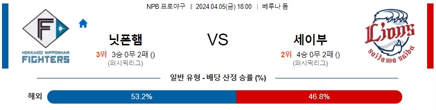 [킹콩티비] 니혼햄 세이부 분석 4월5일 NPB 스포츠중계