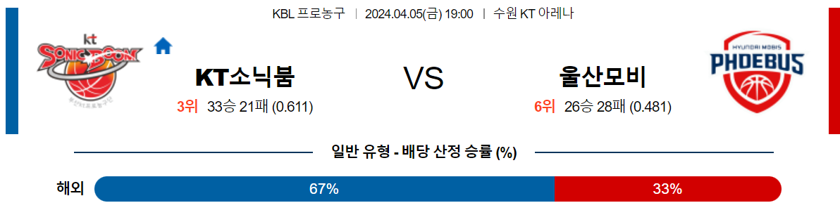 [킹콩티비] KT소닉붐 울산모비스 분석 4월5일 KBL 스포츠중계