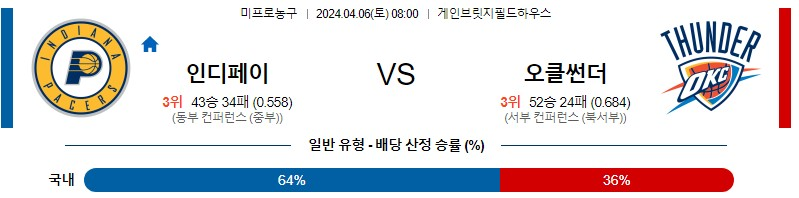 [킹콩티비] 인디애나 오클라호마 분석 4월6일 NBA 스포츠중계