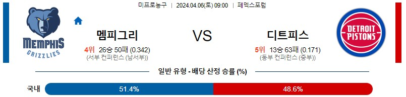 [킹콩티비] 멤피스 디트로이트 분석 4월6일 NBA 스포츠중계