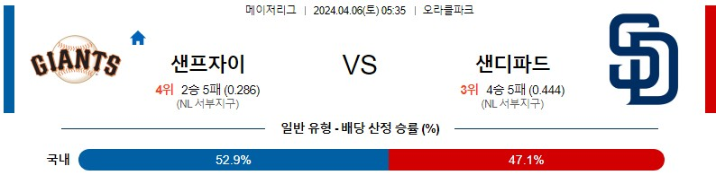 [킹콩티비] 샌프란시스코 샌디에이고 분석 4월6일 MLB 스포츠중계