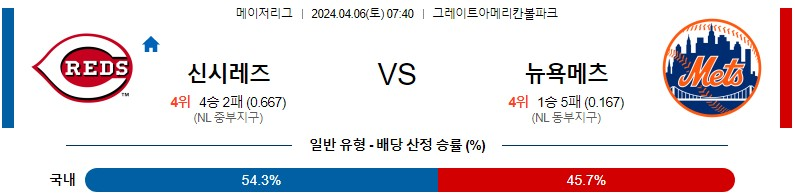 [킹콩티비] 신시내티 메츠 분석 4월6일 MLB 스포츠중계
