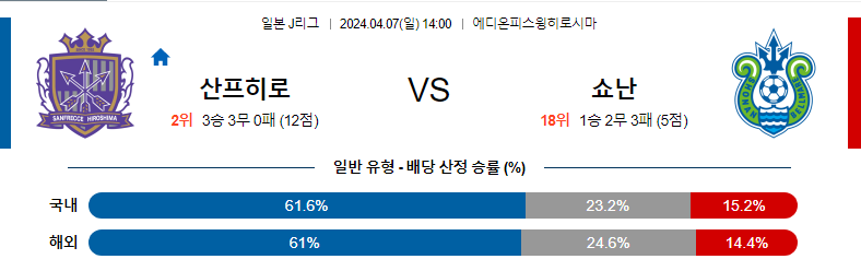 [킹콩티비] 히로시마 쇼난 분석 4월7일 J리그 스포츠중계