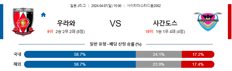 [킹콩티비] 우라와 사간도스 분석 4월7일 J리그 스포츠중계