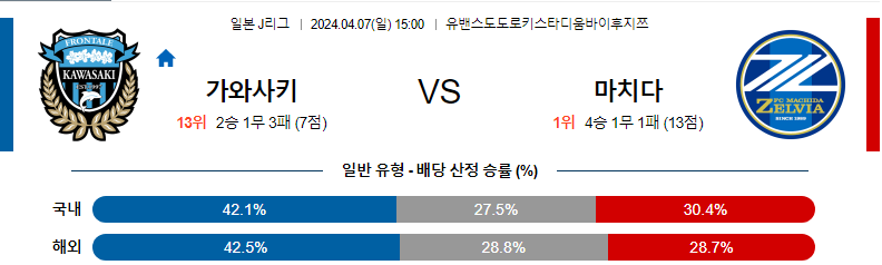 [킹콩티비] 가와사키 마치다 분석 4월7일 J리그 스포츠중계