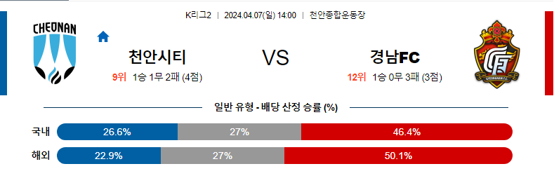 [핸디캡 / +1.0] 천안 승 (추천 x)