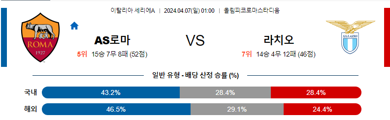 [킹콩티비] AS로마 라치오 분석 4월7일 세리에A 스포츠중계