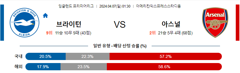 [킹콩티비] 브라이튼 아스날 분석 4월7일 EPL 스포츠중계