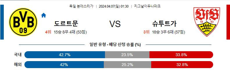 [킹콩티비] 도르트문트 슈투트가르트 분석 4월7일 분데스리가 스포츠중계
