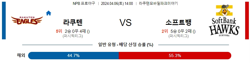 라쿠텐 소프트뱅크 4월6일