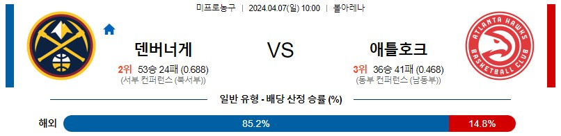 [킹콩티비] 덴버 애틀란타 분석 4월7일 NBA 스포츠중계