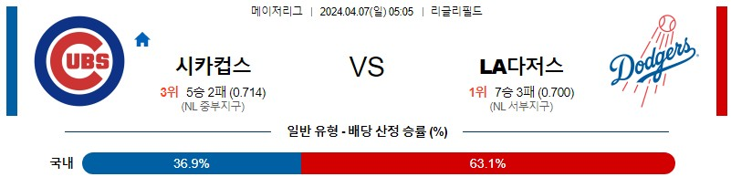 [킹콩티비] 컵스 다저스 분석 4월7일 MLB 스포츠중계