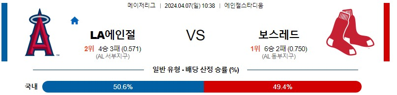 [킹콩티비] 에인절스 보스턴 분석 4월7일 MLB 스포츠중계