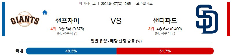 [킹콩티비] 샌프란시스코 샌디에이고 분석 4월7일 MLB 스포츠중계