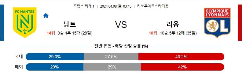 [킹콩티비] 낭트 리옹 분석 4월8일 리그1 스포츠중계