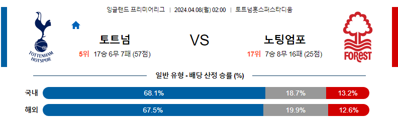 [킹콩티비] 토트넘 노팅엄 분석 4월8일 EPL 스포츠중계