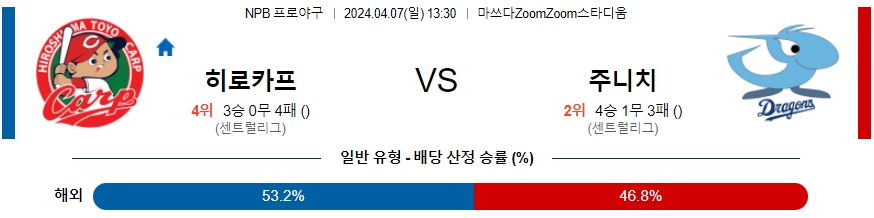 [킹콩티비] 히로시마 주니치 분석 4월7일 NPB 스포츠중계