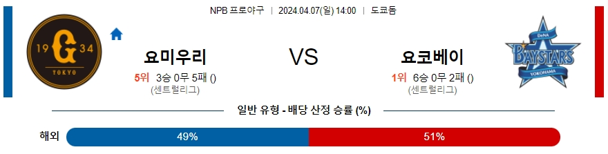 [킹콩티비] 요미우리 요코하마 분석 4월7일 NPB 스포츠중계