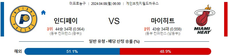 [킹콩티비] 인디애나 마이애미 분석 4월8일 NBA 스포츠중계