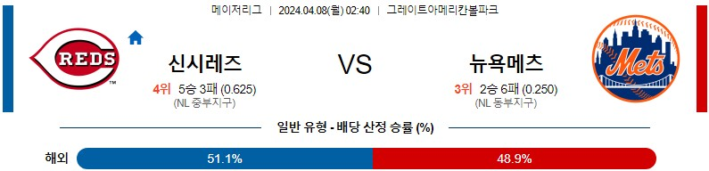 [킹콩티비] 신시내티 메츠 분석 4월8일 MLB 스포츠중계