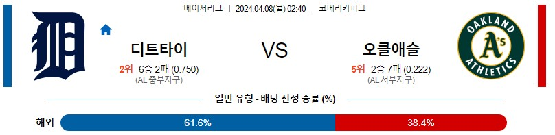 [킹콩티비] 디트로이트 오클랜드 분석 4월8일 MLB 스포츠중계