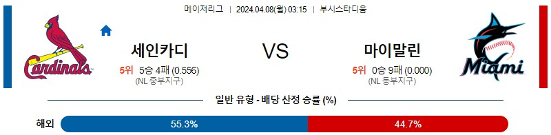 [킹콩티비] 세인트루이스 마이애미 분석 4월8일 MLB 스포츠중계
